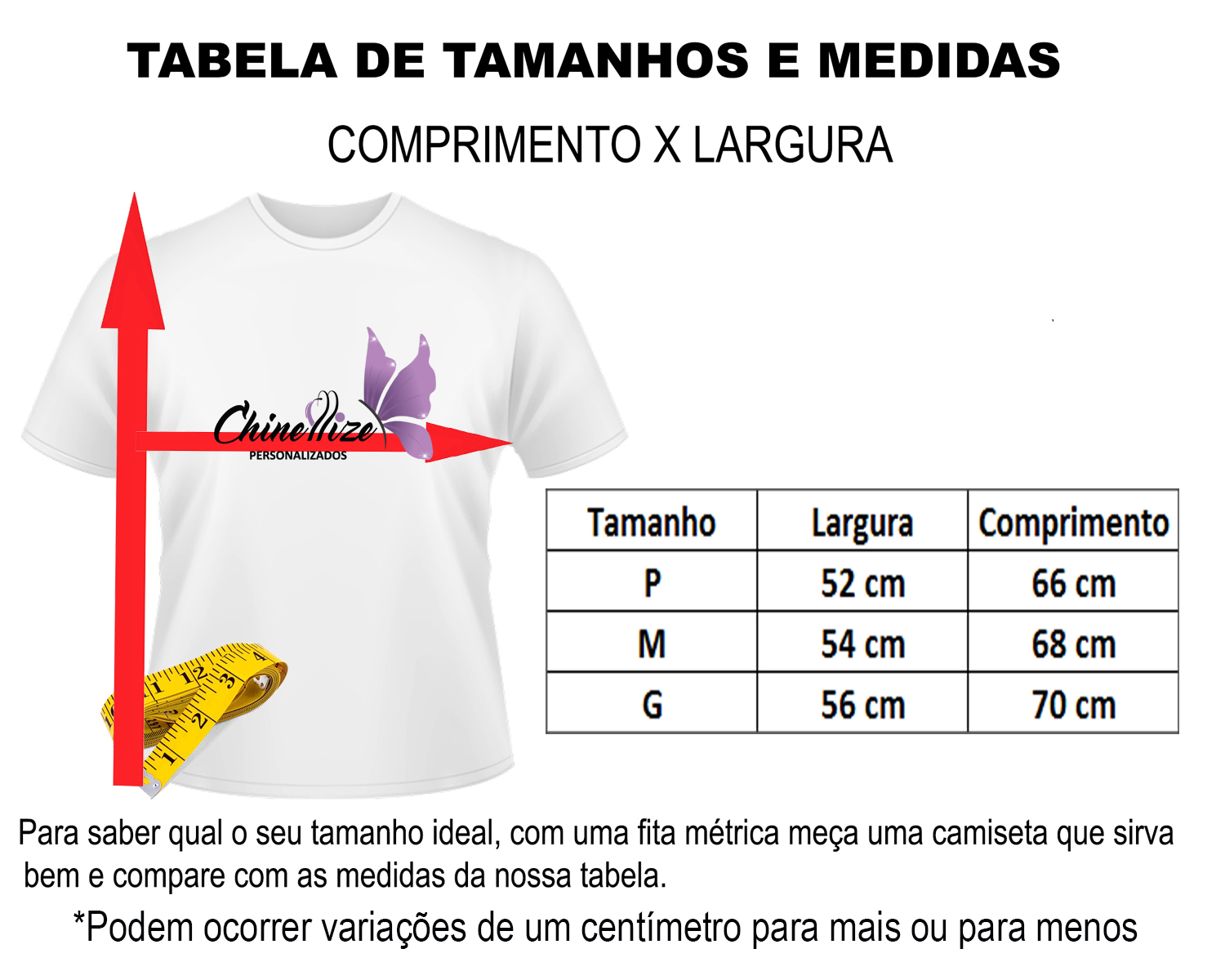 As medidas podem variar até 2 centímetros para mais ou para menos