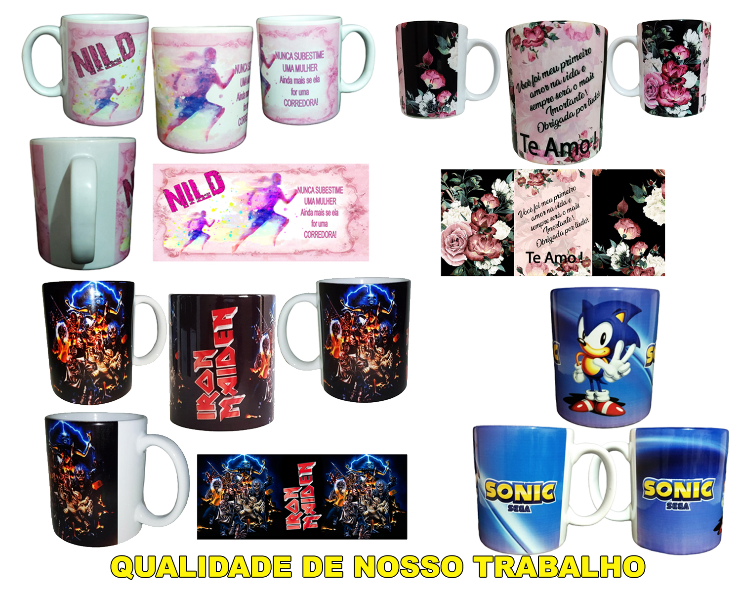 Personalizadas com impressão digital permanente, garantindo alto brilho e qualidade