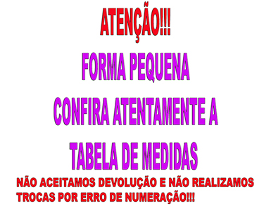 Por se tratar de produtos produzidos sob encomenda exclusivamente de acordo com sua solicitação, (Não aceitamos devolução e não realizamos trocas por erro de numeração)
